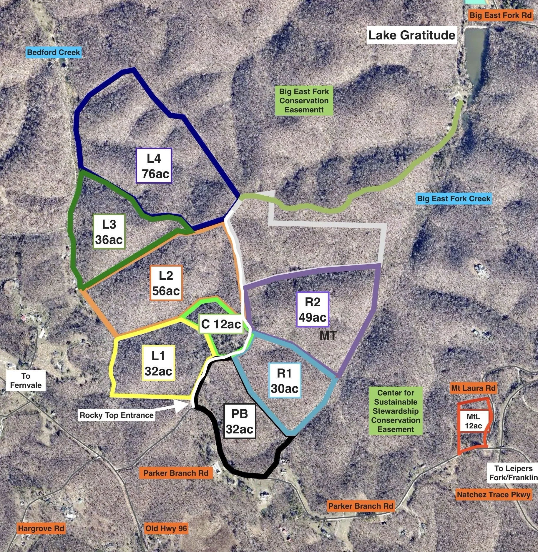625 wooded acres in Leipers Fork, Frankin, Tennessee. A land stewardship community
