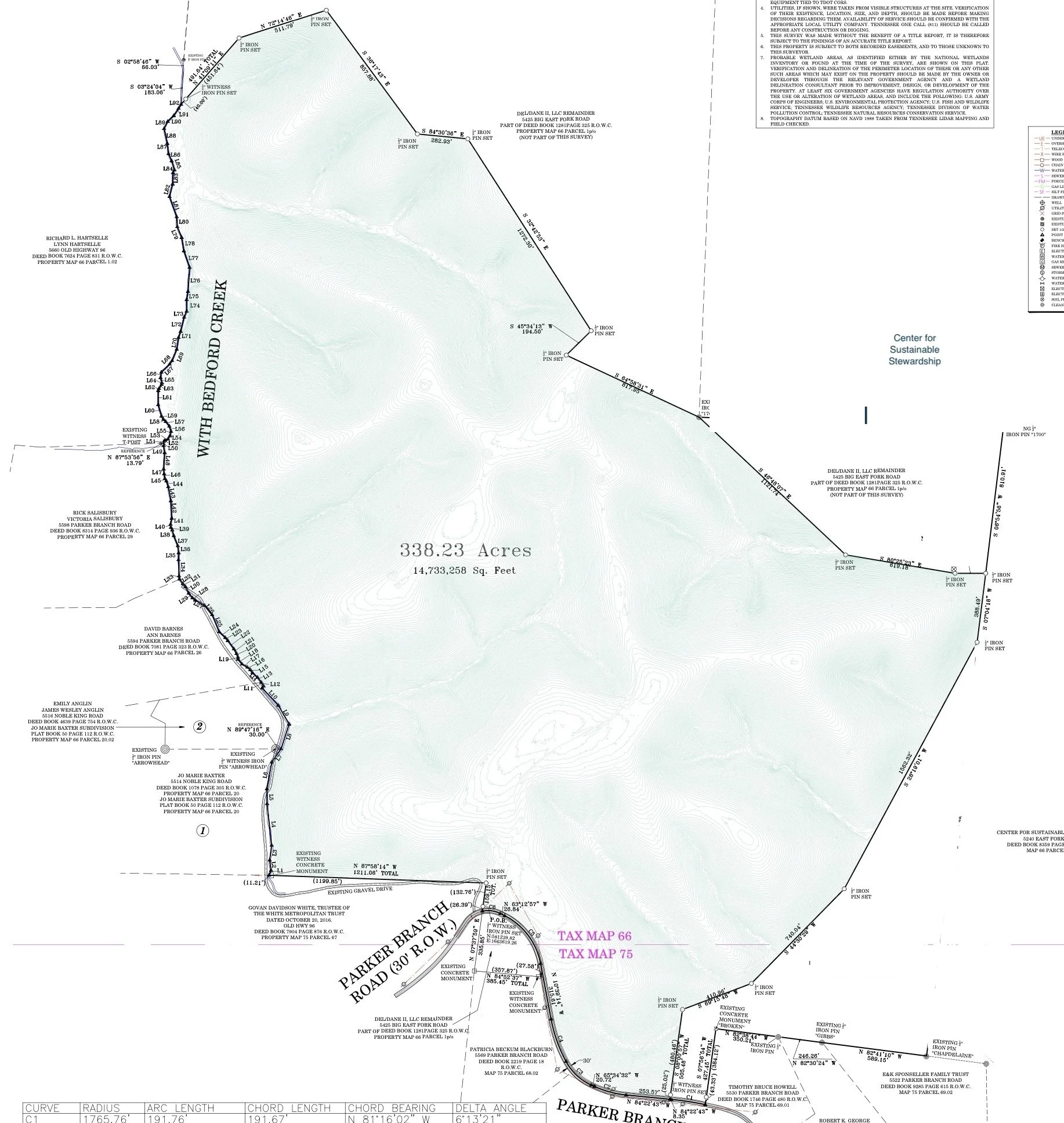 Adjacent to National Park Land (Natchez Trace) and Large Nature Conservation Easement (Center for Sustainable Stewardship)! Adjacent national forest and conservation easement buffer acres protected forever. Hatched areas below.