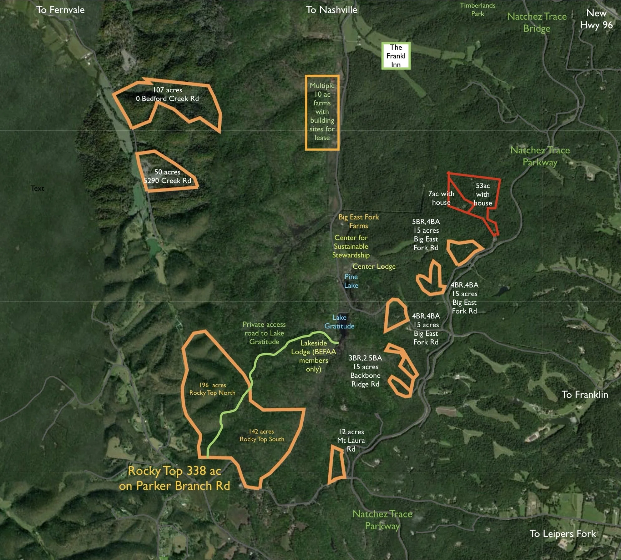 Land and Homes for Sale. Homes on Backbone Ridge, Firetower, and Big East Fork require membership in Big East Fork Agrihood Association